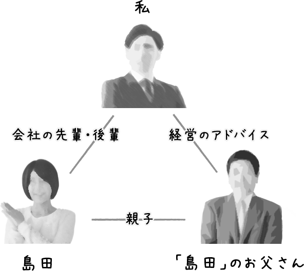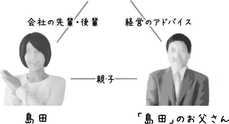 ビジネス全般について、自分なりの知見がある。頼まれると断れない性格。今回、後輩である「島田」のお父さんが手がけることになった喫茶店経営について、できるだけわかりやすく、「ここを掴んでおけば」という観点でアドバイスする。